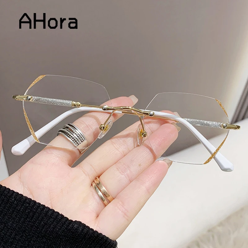 Женские многоугольные очки для чтения Ahora, без оправы, с защитой от синего света, оптические очки для дальнозоркости, 2023