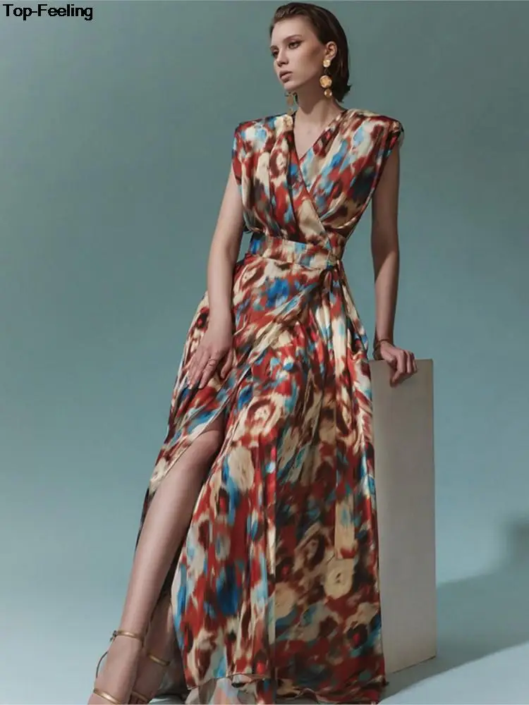 Женские модельные платья с винтажным принтом, длинные летние модные цельные платья со шнуровкой, праздничная одежда Y2k, элегантные женские платья