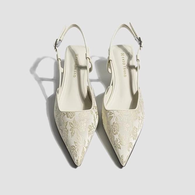 Женские модельные туфли на каблуке с острым носком и закрытым носком, летние удобные свадебные нарядные сандалии, женские туфли-лодочки на низком массивном каблуке 38 абрикосовый