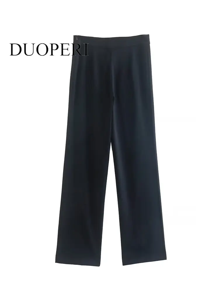 Женские модные однотонные брюки DUOPERI с боковой молнией, винтажные женские шикарные прямые брюки с высокой талией
