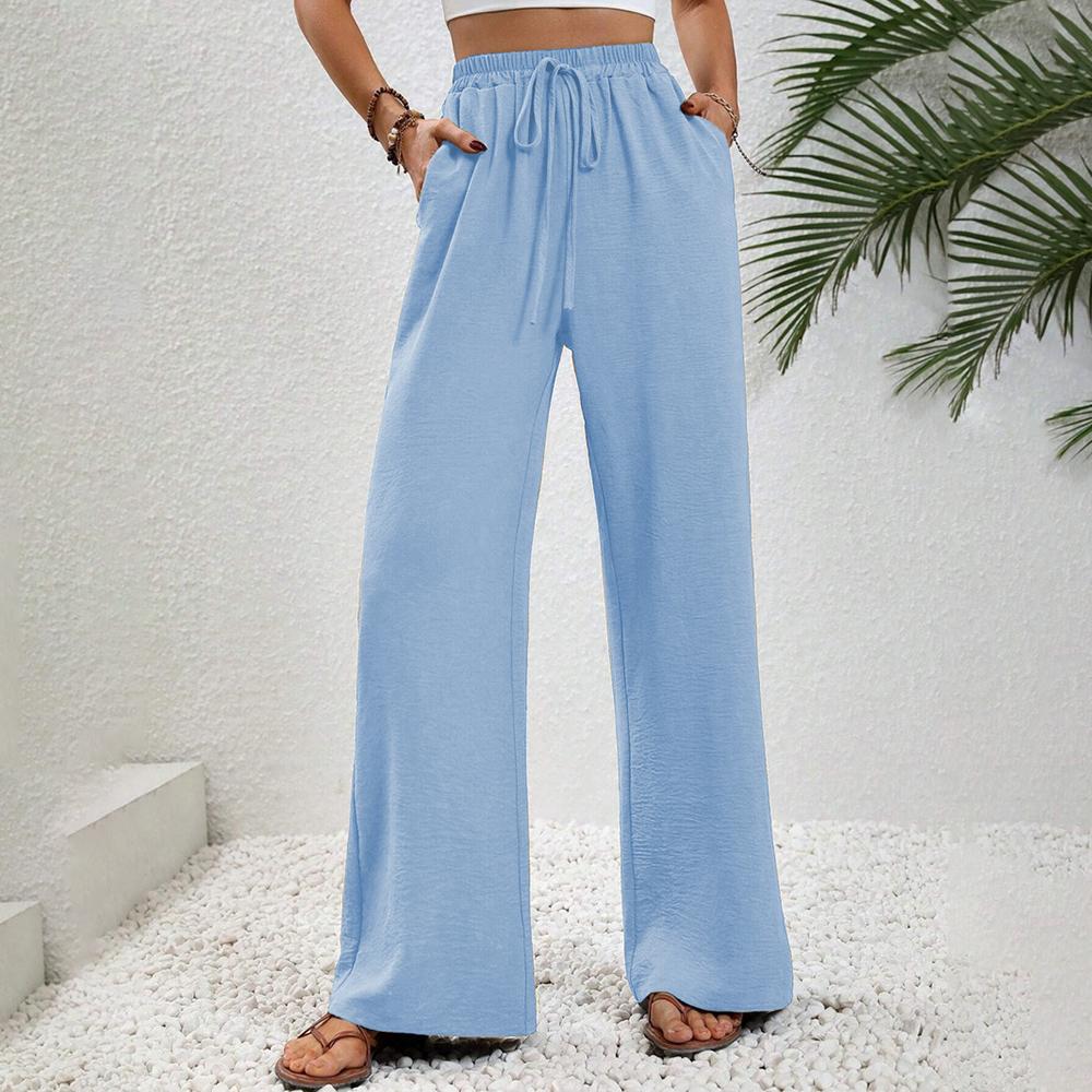 Женские модные однотонные повседневные широкие брюки больших размеров, свободная и персонализированная одежда, повседневная одежда с принтом L светло-синий