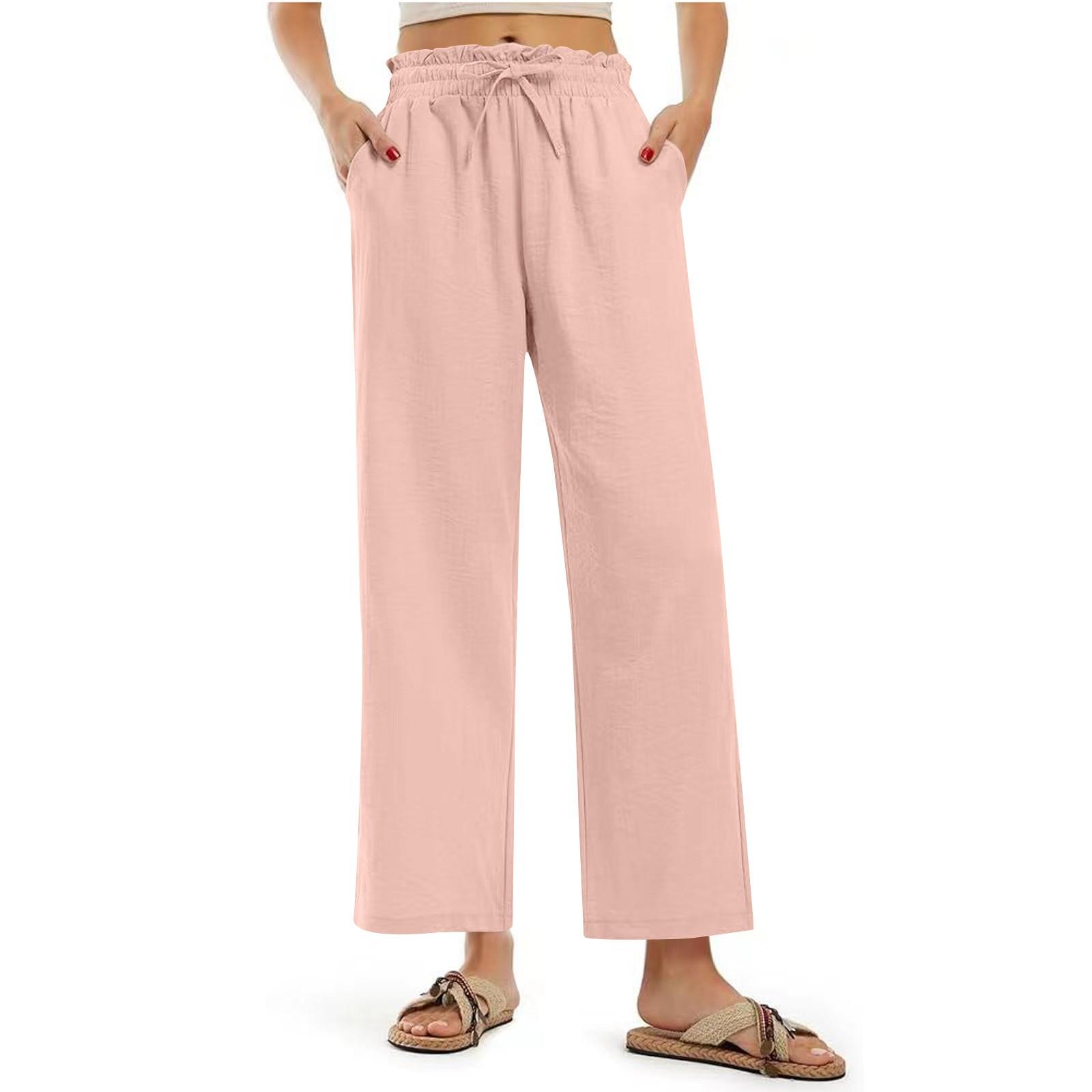Женские модные однотонные хлопковые конопляные свободные брюки с завязками и карманами, широкие брюки, повседневные брюки XL розовый