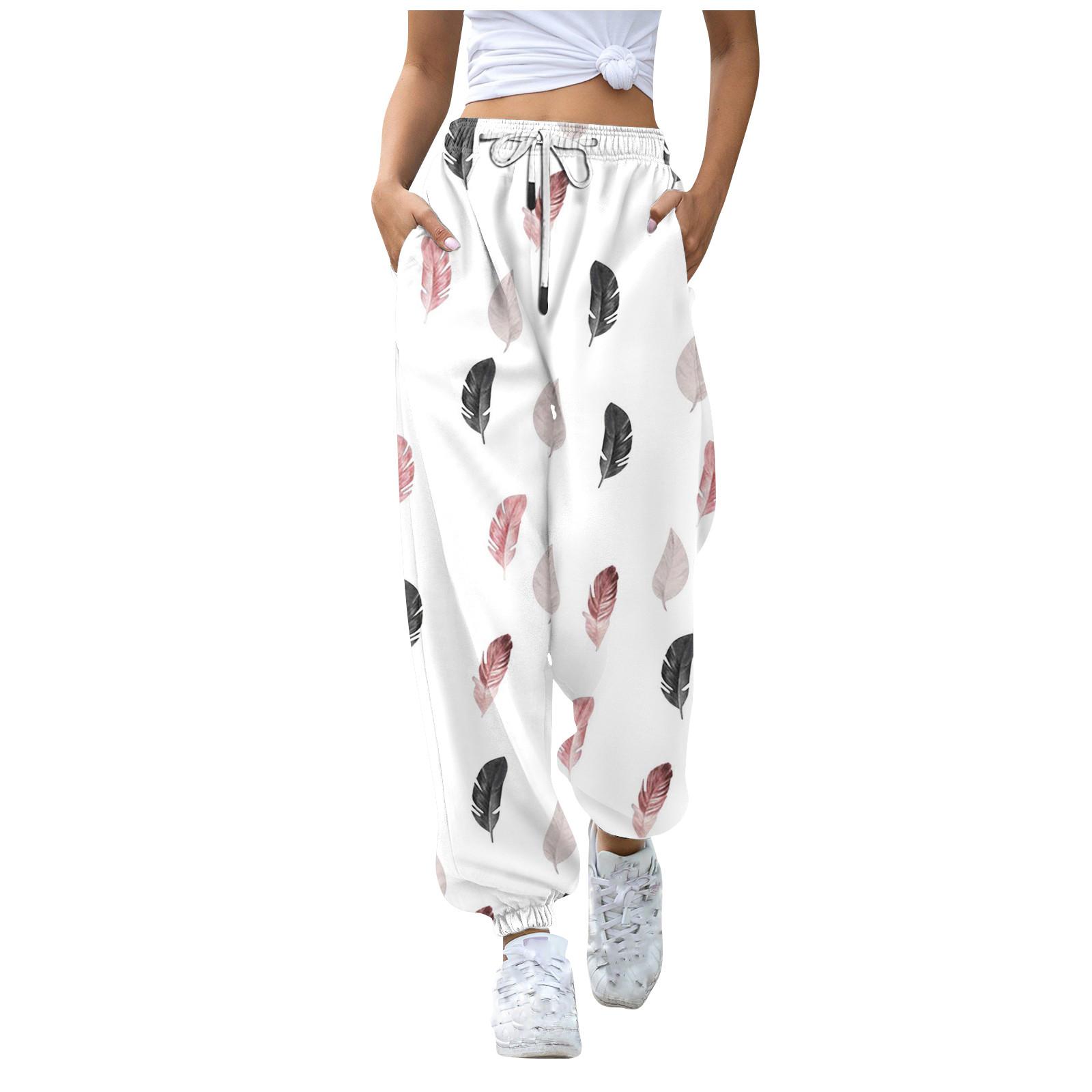 Женские модные повседневные брюки с принтом и эластичным поясом на шнурке XL белый