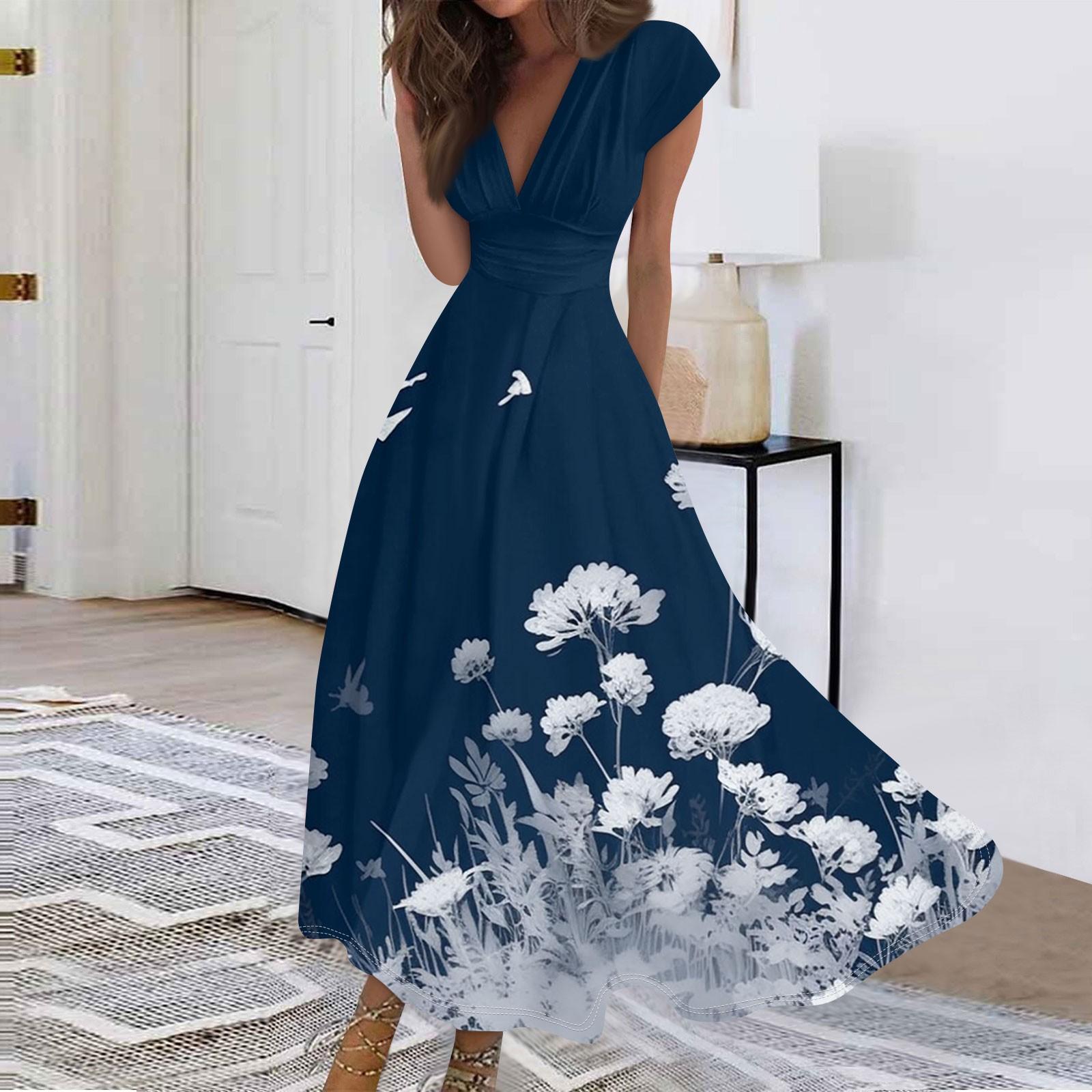 Женские модные повседневные плиссированные платья с v-образным вырезом и рюшами и коротким рукавом с цветочным принтом и шнуровкой XL