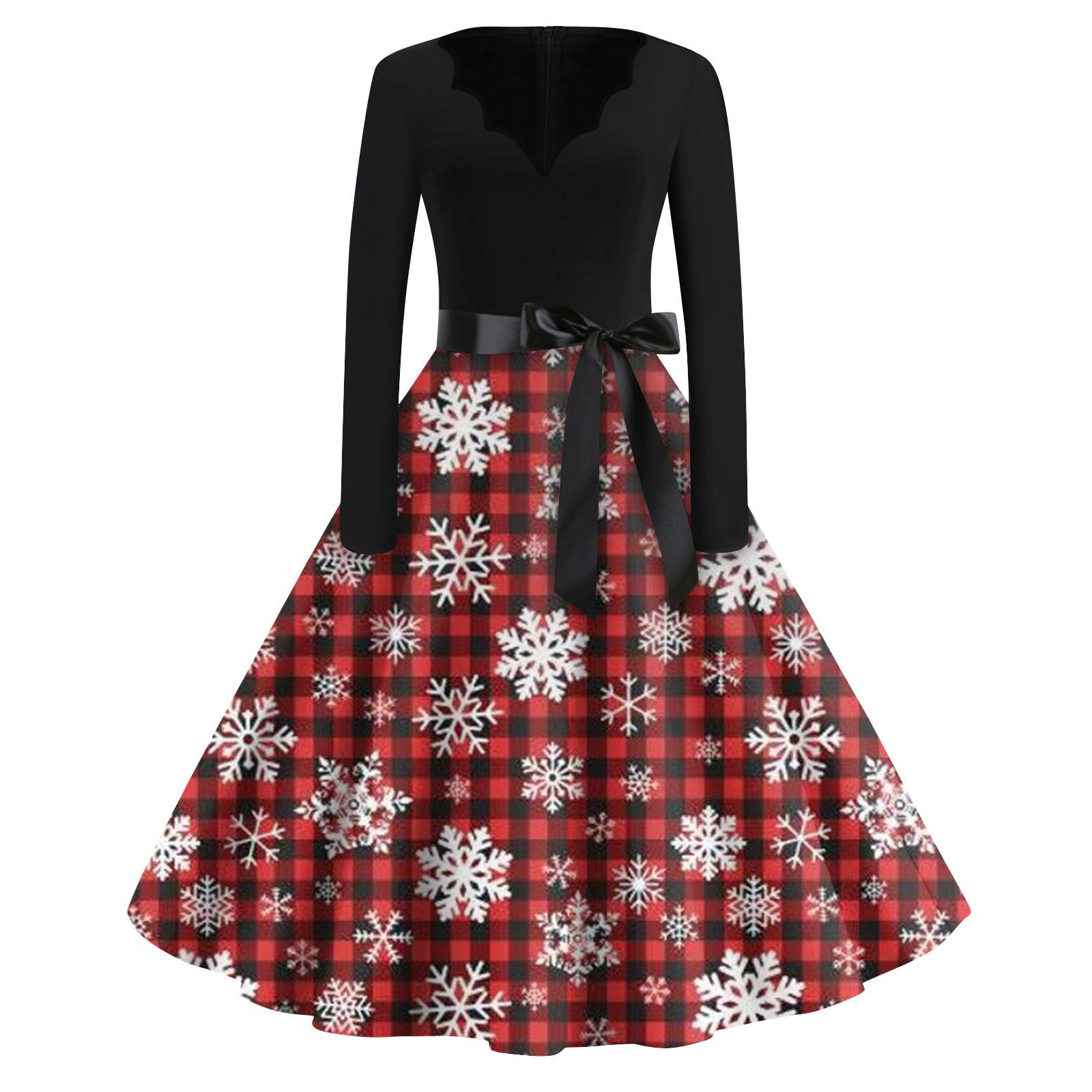 Женские модные повседневные тонкие рождественские платья с длинным рукавом с v-образным вырезом и принтом M разноцветный