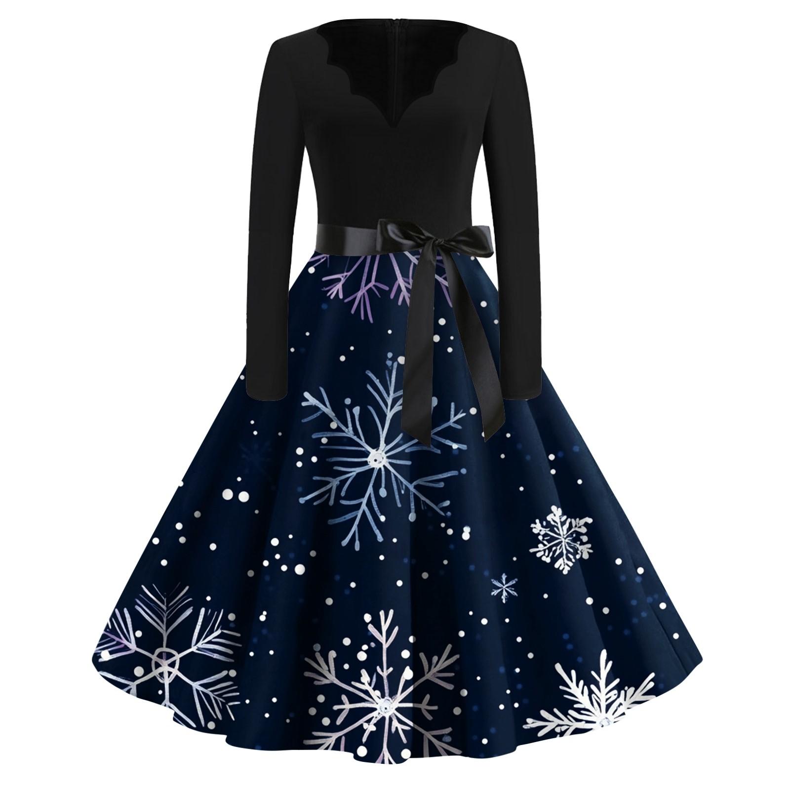 Женские модные повседневные тонкие рождественские платья с длинным рукавом с v-образным вырезом и принтом L тёмно-синий