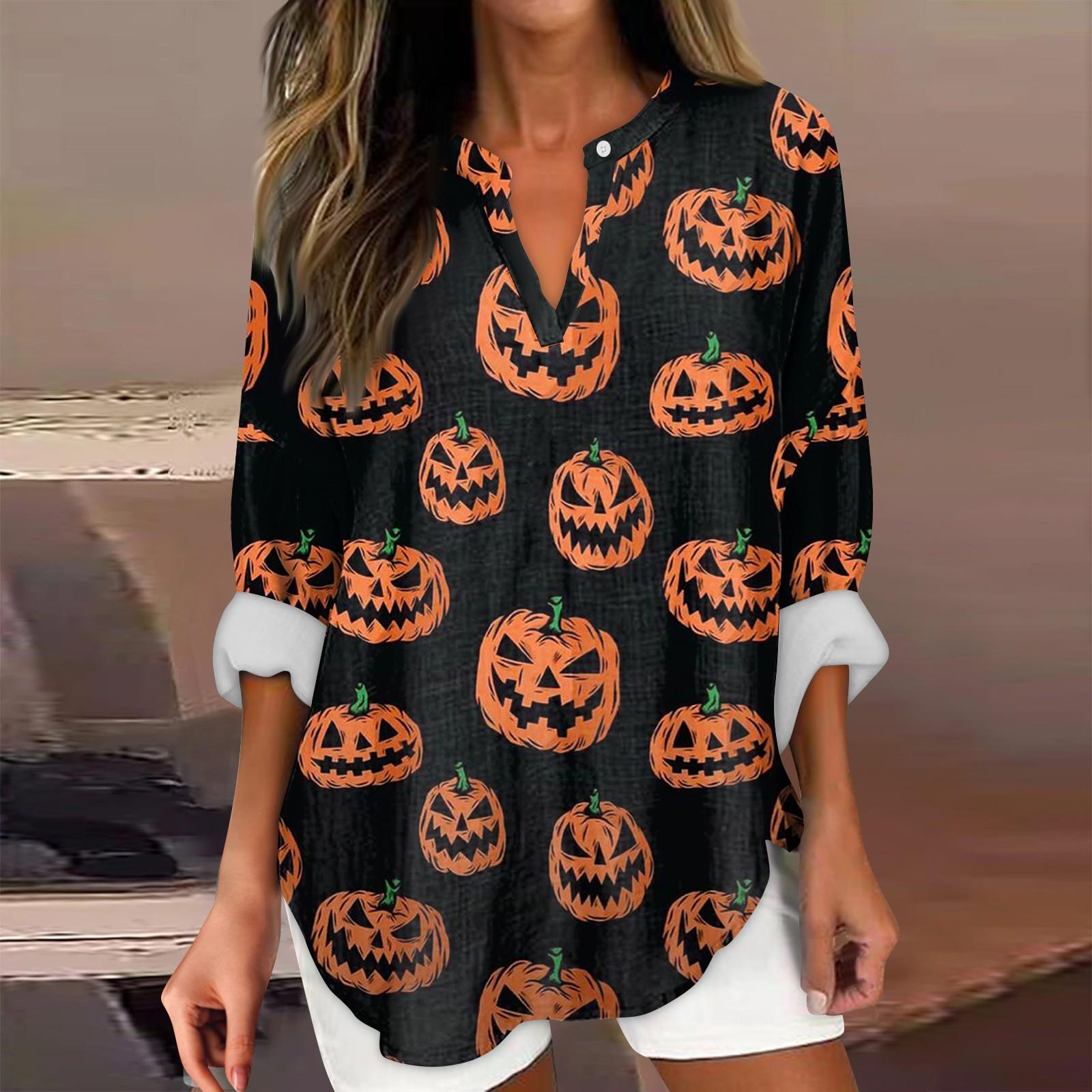 Женские модные повседневные женские топы с v-образным вырезом и длинным рукавом с принтом на Хэллоуин XXL жёлтый