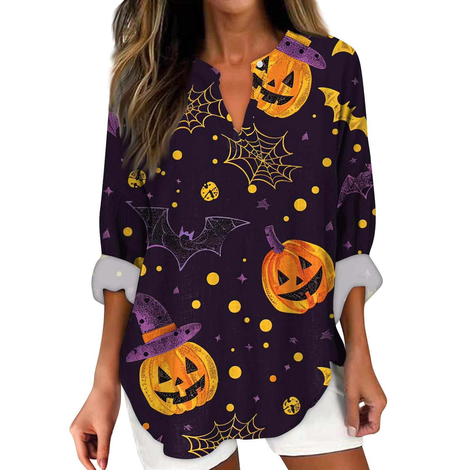 Женские модные повседневные женские топы с v-образным вырезом и заниженными плечами и принтом на Хэллоуин S
