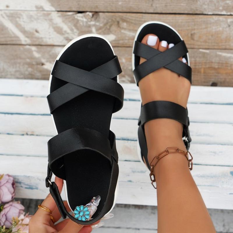 Женские модные противоскользящие удобные сандалии на плоской подошве одинакового цвета со шнурком и подошвой 43