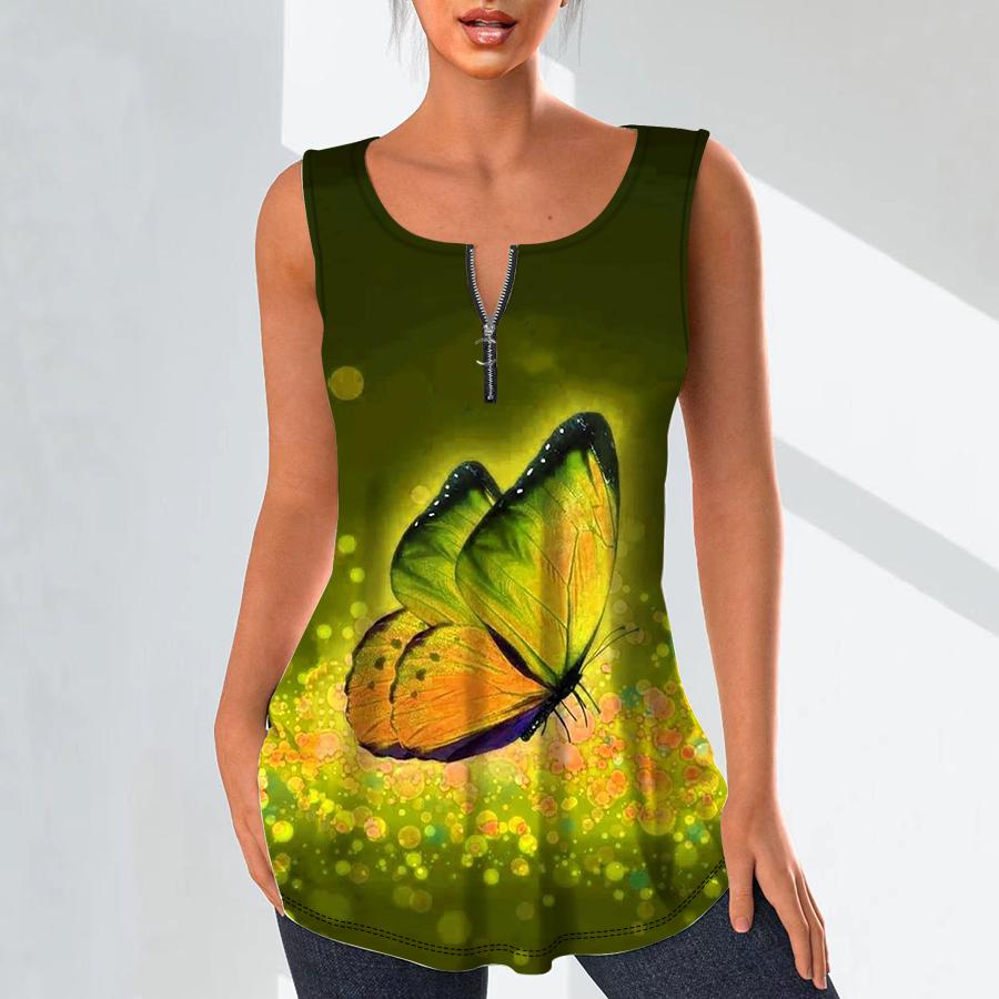 Женские модные рубашки с v-образным вырезом, повседневные топы, футболка, женский жилет с 3D синим принтом бабочки, блузка без рукавов больших размеров, топы на бретелях 6XL жёлтый