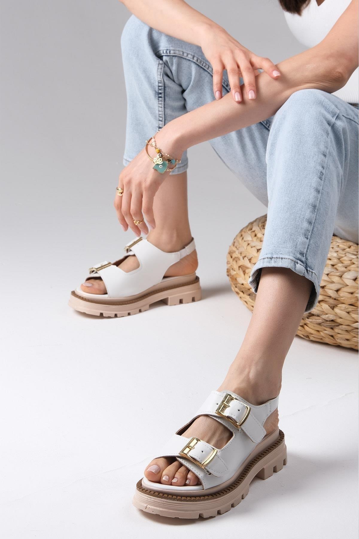 Женские модные сандалии Blake белого цвета с двойной пряжкой, туфли