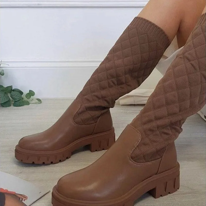 Женские модные сапоги выше колена, женские ботильоны с ремешком на щиколотке, удобная женская обувь из искусственной кожи на молнии и толст...