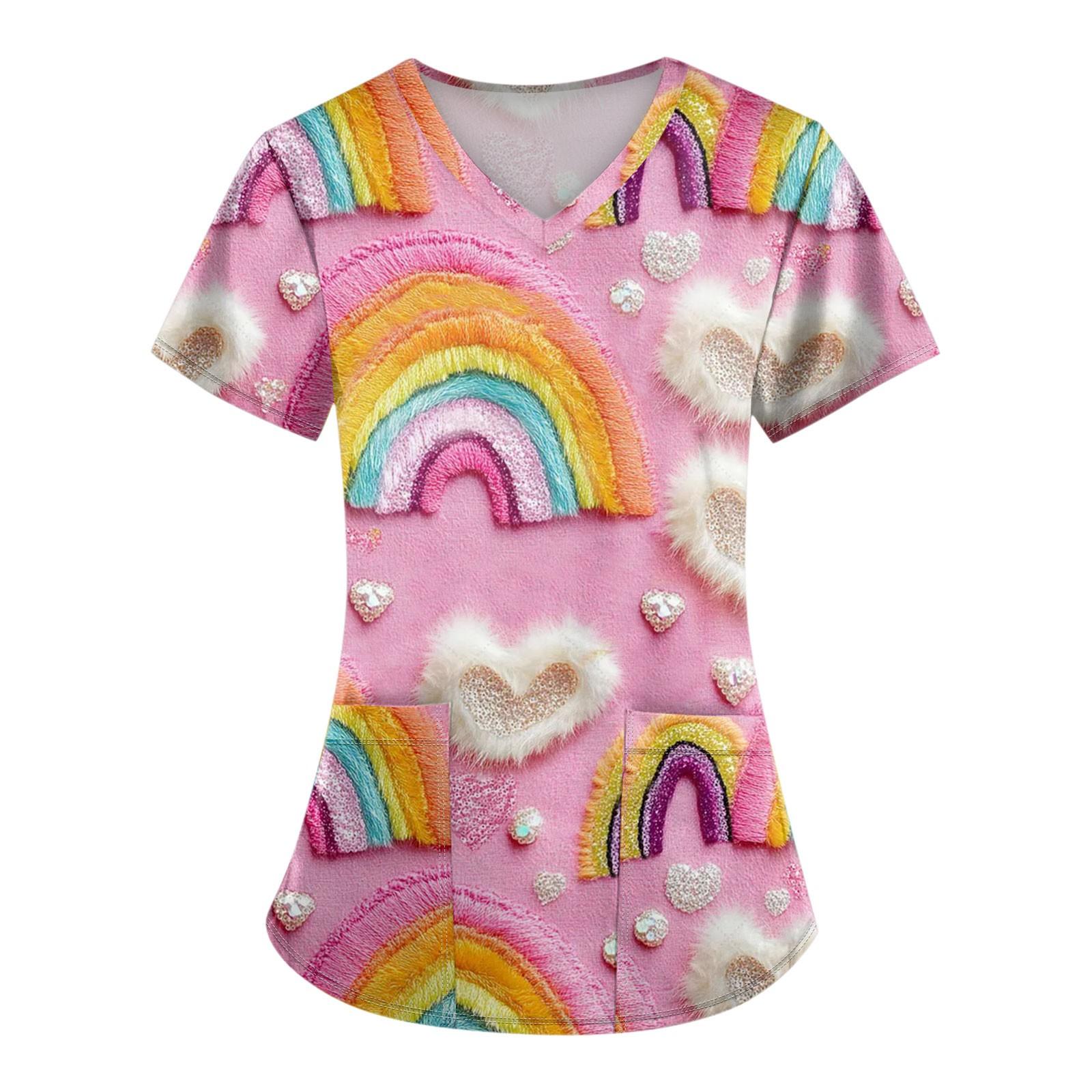 Женские модные топы с короткими рукавами и V-образным вырезом с принтом, рабочие футболки с карманами XL жёлтый
