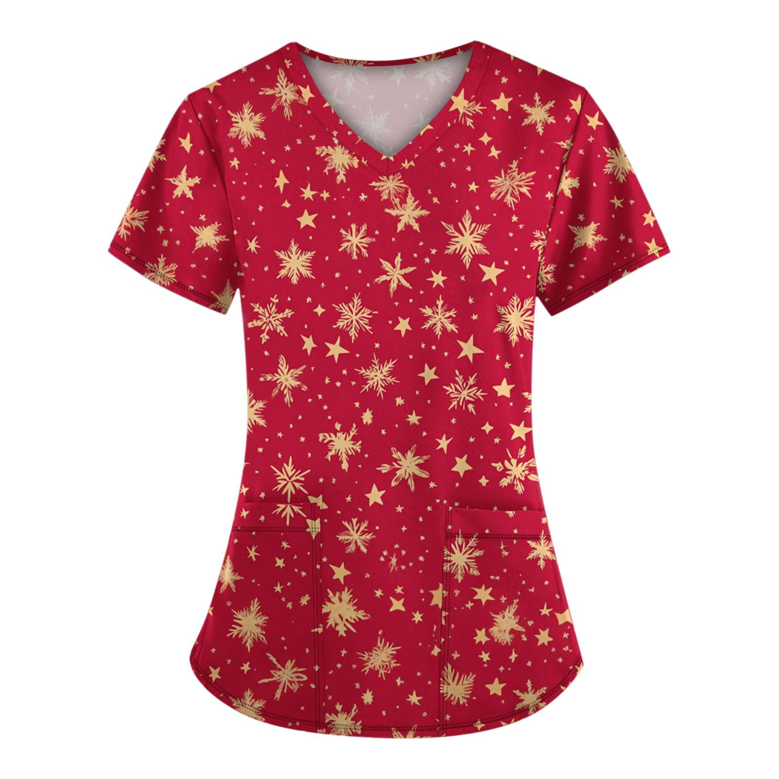 Женские модные топы с короткими рукавами и V-образным вырезом с принтом, рабочие футболки с карманами XXXL винный