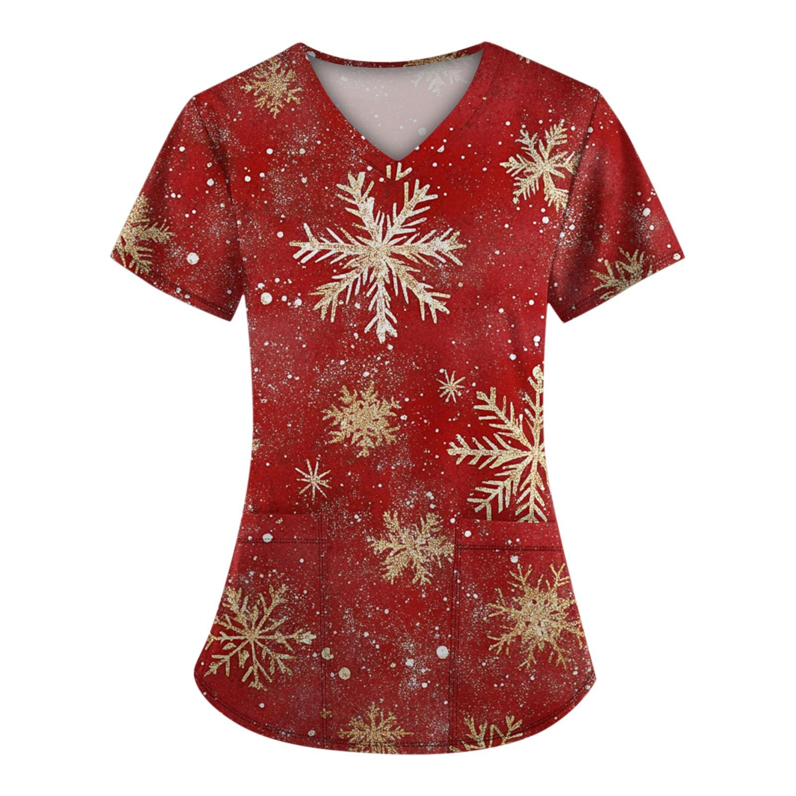 Женские модные топы с короткими рукавами и V-образным вырезом с принтом, рабочие футболки с карманами XXXXXL винный