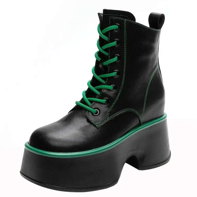 Женские мотоциклетные ботинки из натуральной кожи, на платформе 11 см