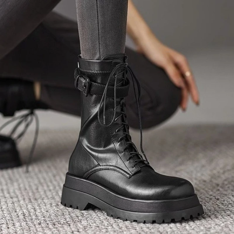 Женские мотоциклетные ботинки, черные ботинки из мягкой кожи на танкетке, со шнуровкой, белые, для зимы, 2022