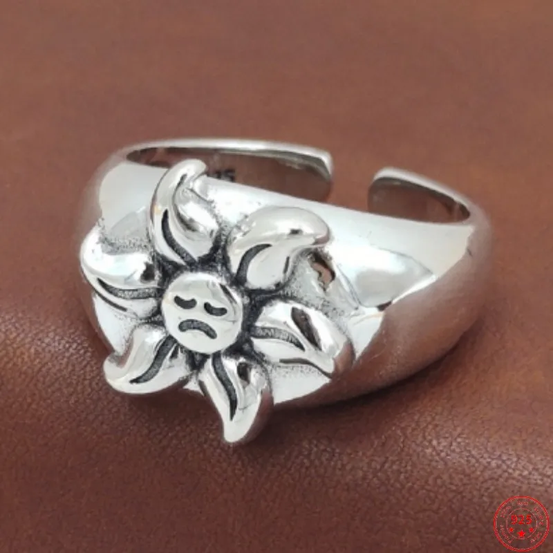 Женские и мужские кольца из серебра 2023 пробы, регулируемые кольца из серебра пробы с рельефным цветочным узором, ювелирные изделия из серебра
