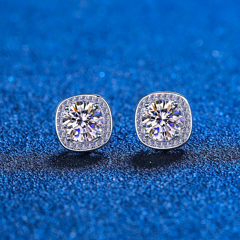 Женские и мужские серьги-гвоздики из серебра 100% пробы с искусственным бриллиантом 1-2 карата