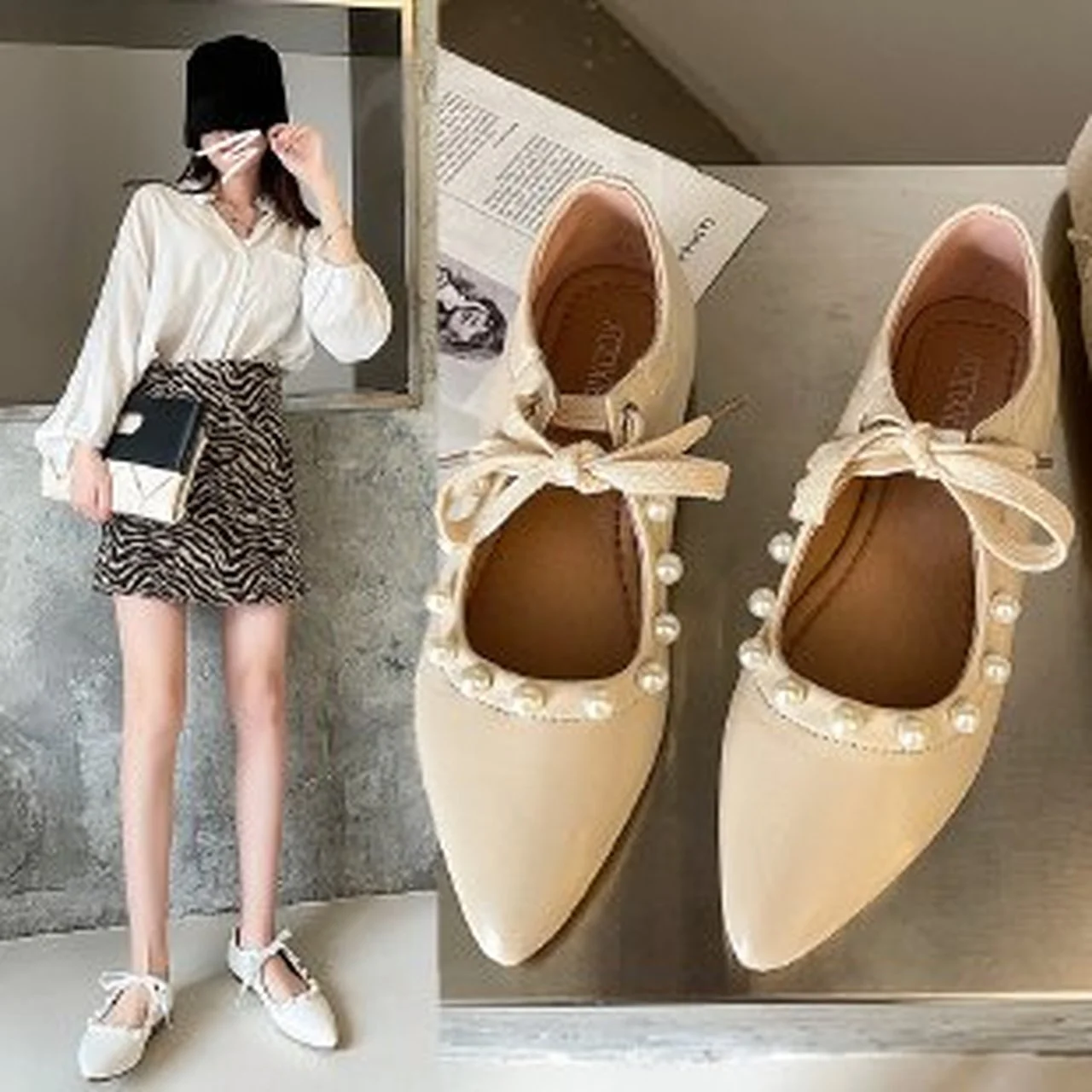Женские мягкие туфли с закрытым носком, новинка 2021, Женские Элегантные повседневные кружевные туфли с украшением из жемчуга, универсальные ...