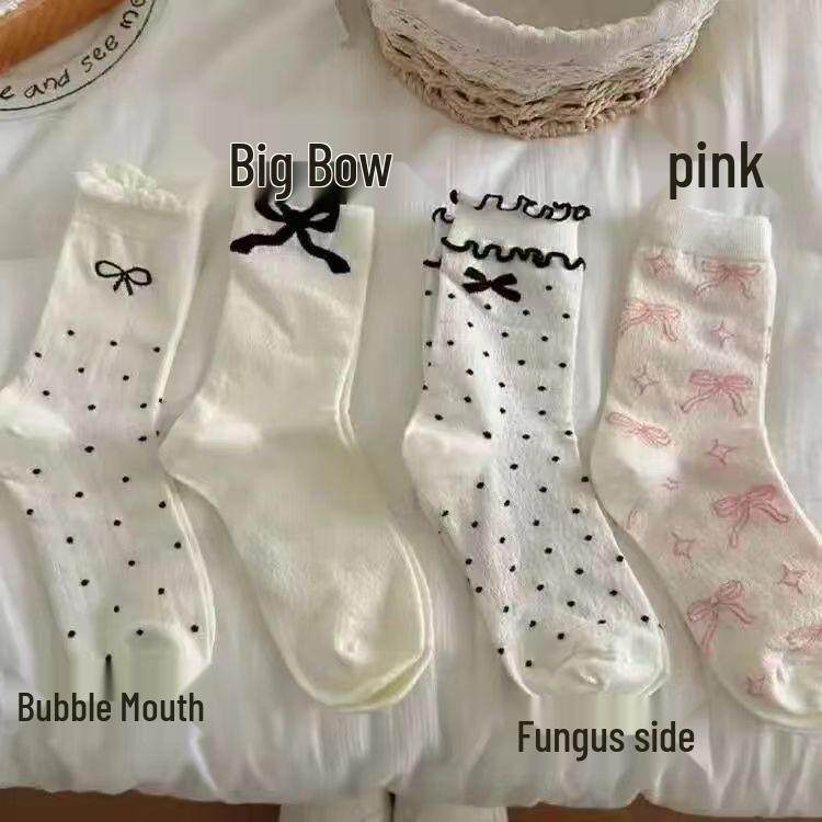 Женские носки-гольфы Лолита с кружевом и бантом - До середины икры, Сетчатый хлопок, Влагоотводящие, Весенне-летний стиль Large Bow