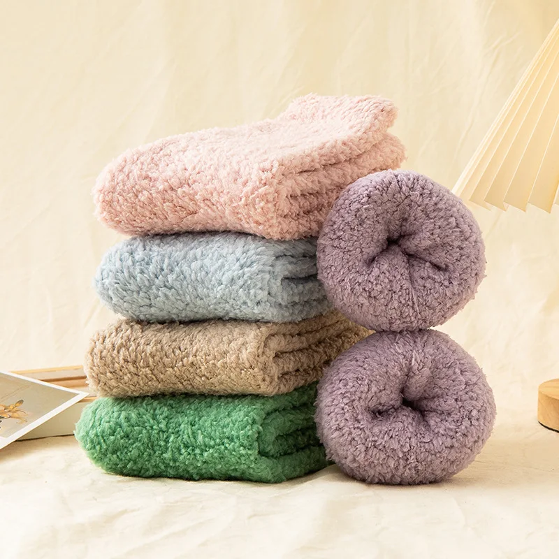 Женские носки, зимние носки средней длины из кораллового флиса, теплые и прочные бархатные толстые носки, хлопковые носки для сна в пол