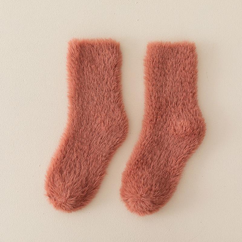 Женские носки, очень толстые меховые носки, носки из норки, флисовые носки осенне-зимние, флисовые утолщенные носки средней толщины, махровые носки, плюшевые, теплые носки, защищающие от холода one size красный