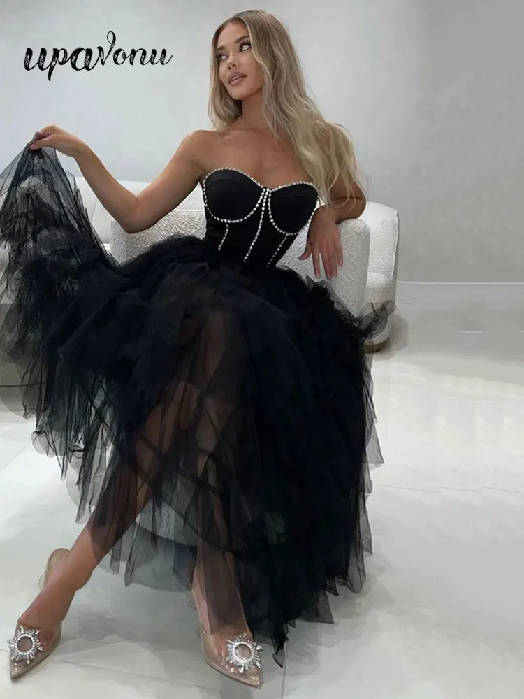Женские облегающие платья, летнее многослойное пышное платье средней длины со стразами, вечернее праздвечерние платье знаменитости, 2022