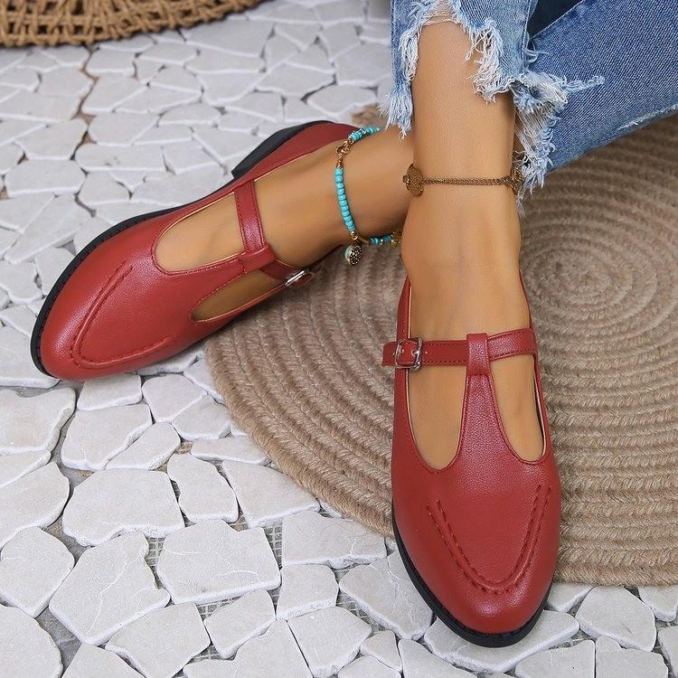 Женские одинарные туфли большого размера в Европе и США, толстые и маленькие кожаные туфли, туфли Mueller 43 красный