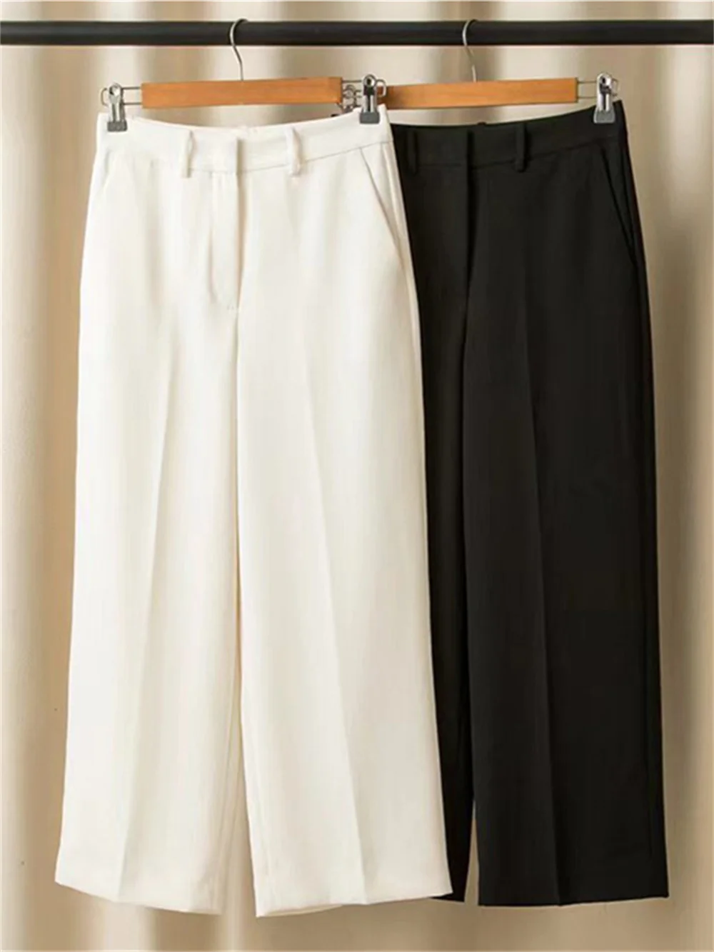 Женские однотонные брюки с завышенной талией, Свободные повседневные брюки на молнии, женские прямые брюки из смешанной уксусной кислоты, Новинка осени 2023