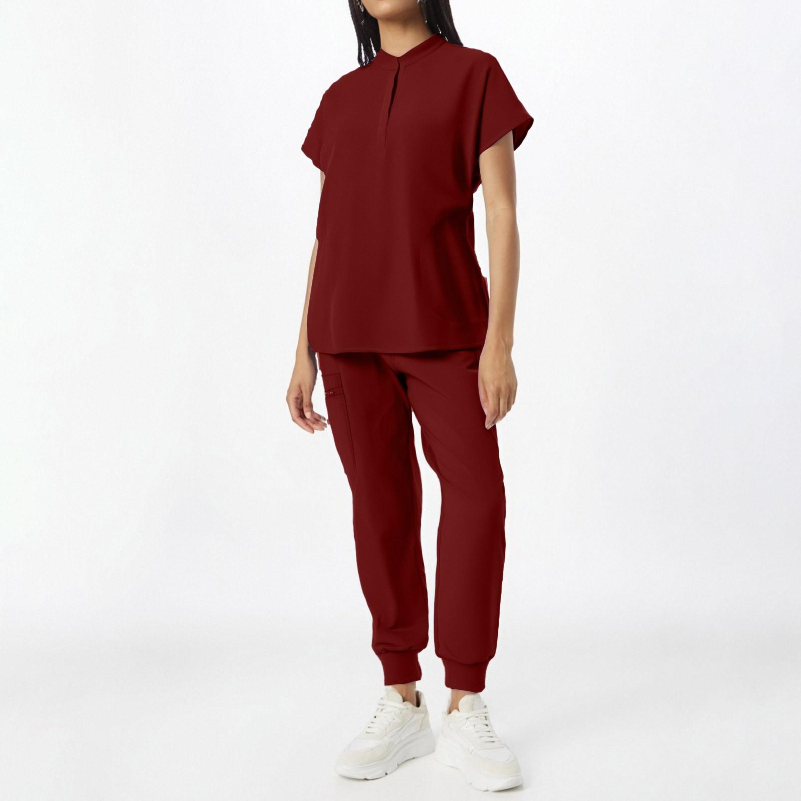 Женские однотонные брюки с короткими рукавами и карманами, брюки с завязками на ногах, комплект из двух предметов для работы XXL винный