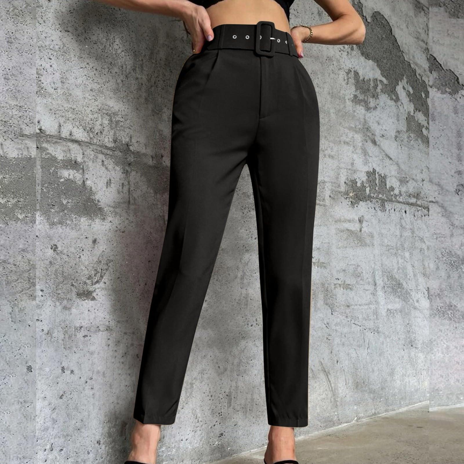Женские однотонные повседневные брюки, облегающий крой, пояс с отделкой, прямые брюки с узором «девять точек» XXXL чёрный