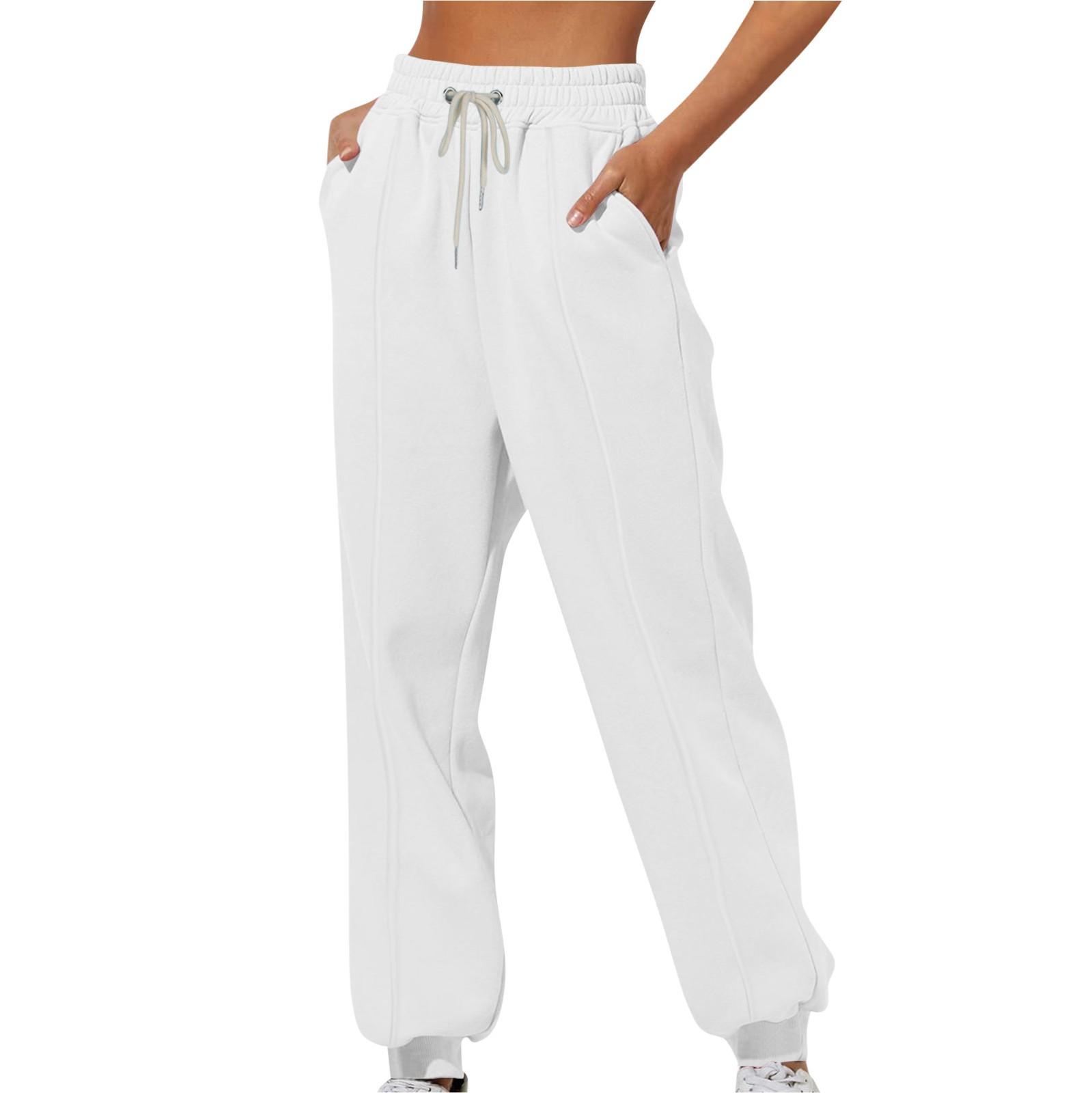 Женские однотонные повседневные утепленные свободные спортивные штаны с завязками на шнурке для отдыха, длинные брюки XL белый
