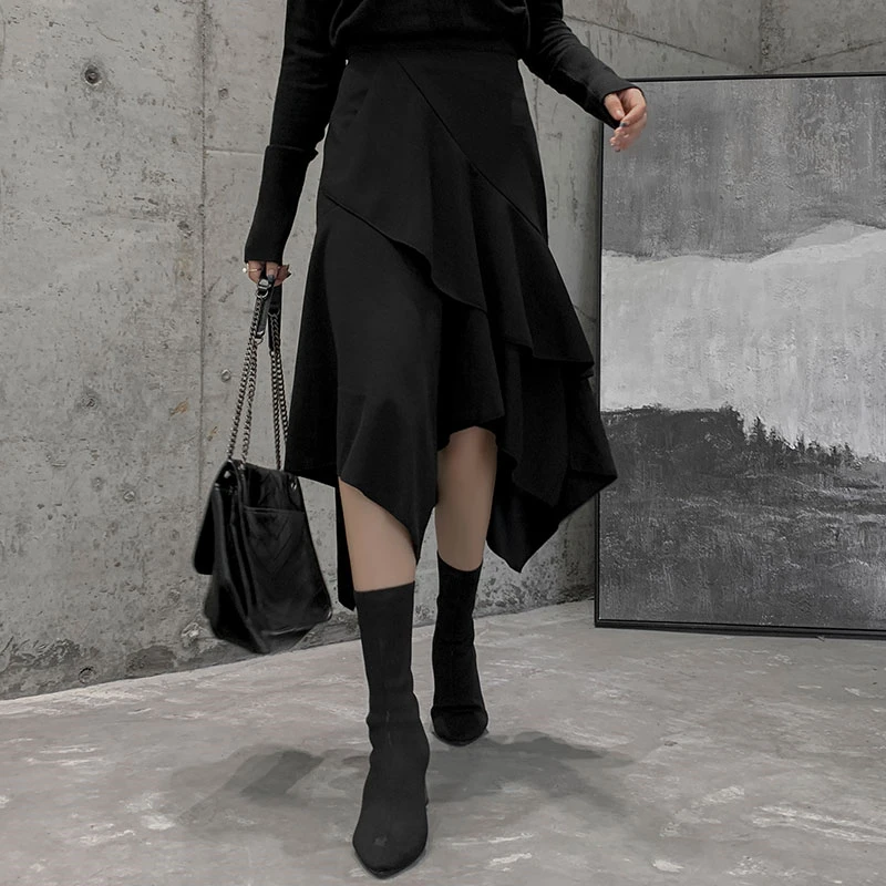 Женские однотонные юбки а-силуэта с оборками, весенние однотонные юбки с высокой талией, корейские повседневные Модные женские элегантные ...
