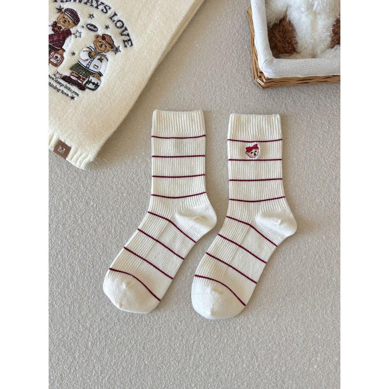 Женские осенне-зимние теплые простые и универсальные полосатые бесшовные милые мультяшные носки средней длины из микропрессованной шерсти 1 pair белый