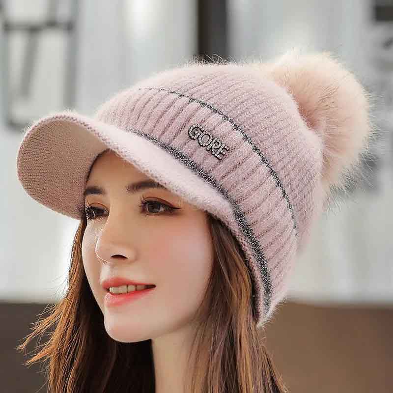Женские осенние и зимние шапки плюс бархатная теплая шерстяная кепка светло-розовый