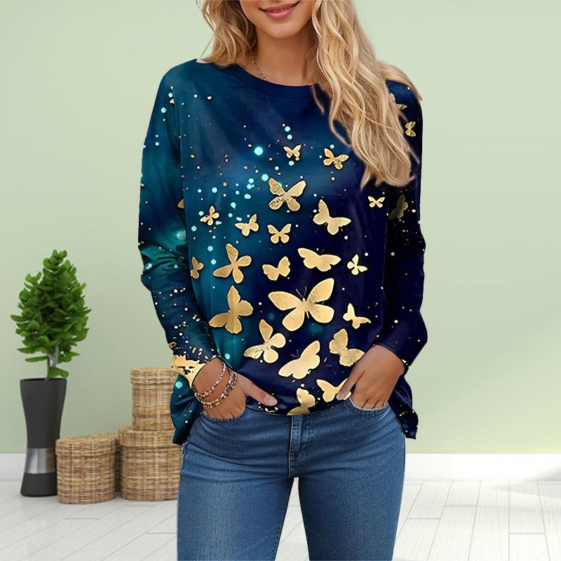 Женские осенние топы с принтом «Золотая бабочка» Повседневная футболка с длинным рукавом Топ Блузка 8XL золотой