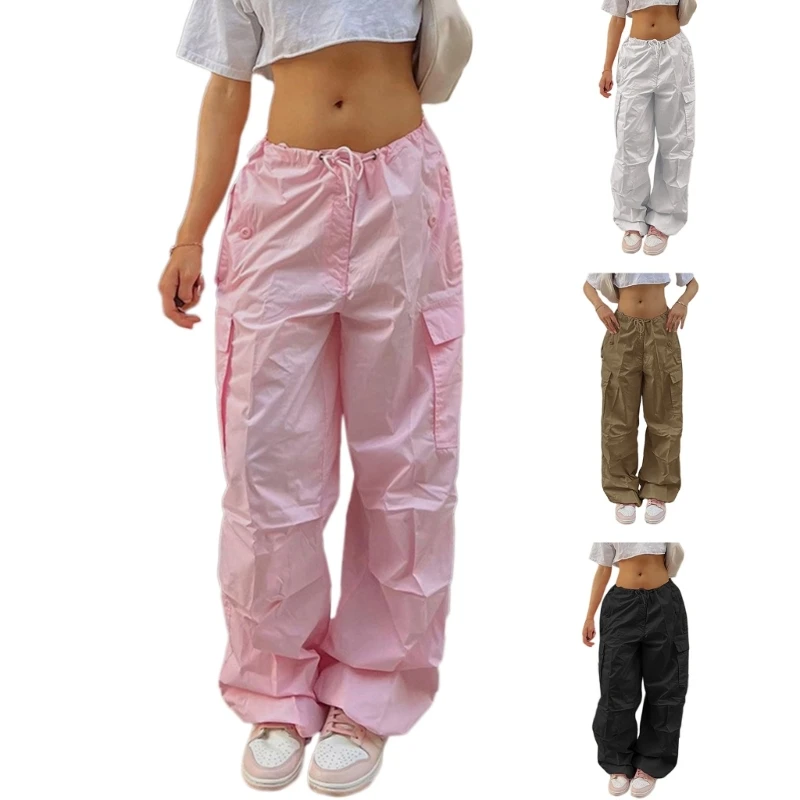 Женские парашютные брюки, мешковатые брюки-карго с карманами и заниженной талией, Y2K