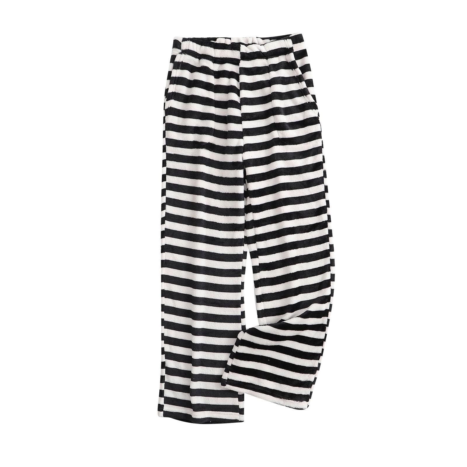 Женские пижамные штаны, плюшевые пижамные штаны, мягкая эластичная талия, пижамные штаны в полоску с 2 карманами M чёрный