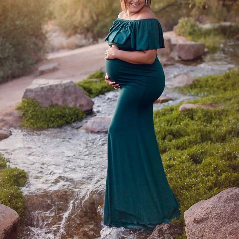 Женские платья для беременных с открытыми плечами для фотосъемки с оборками элегантные облегающие платья макси для беременных платье для ф...