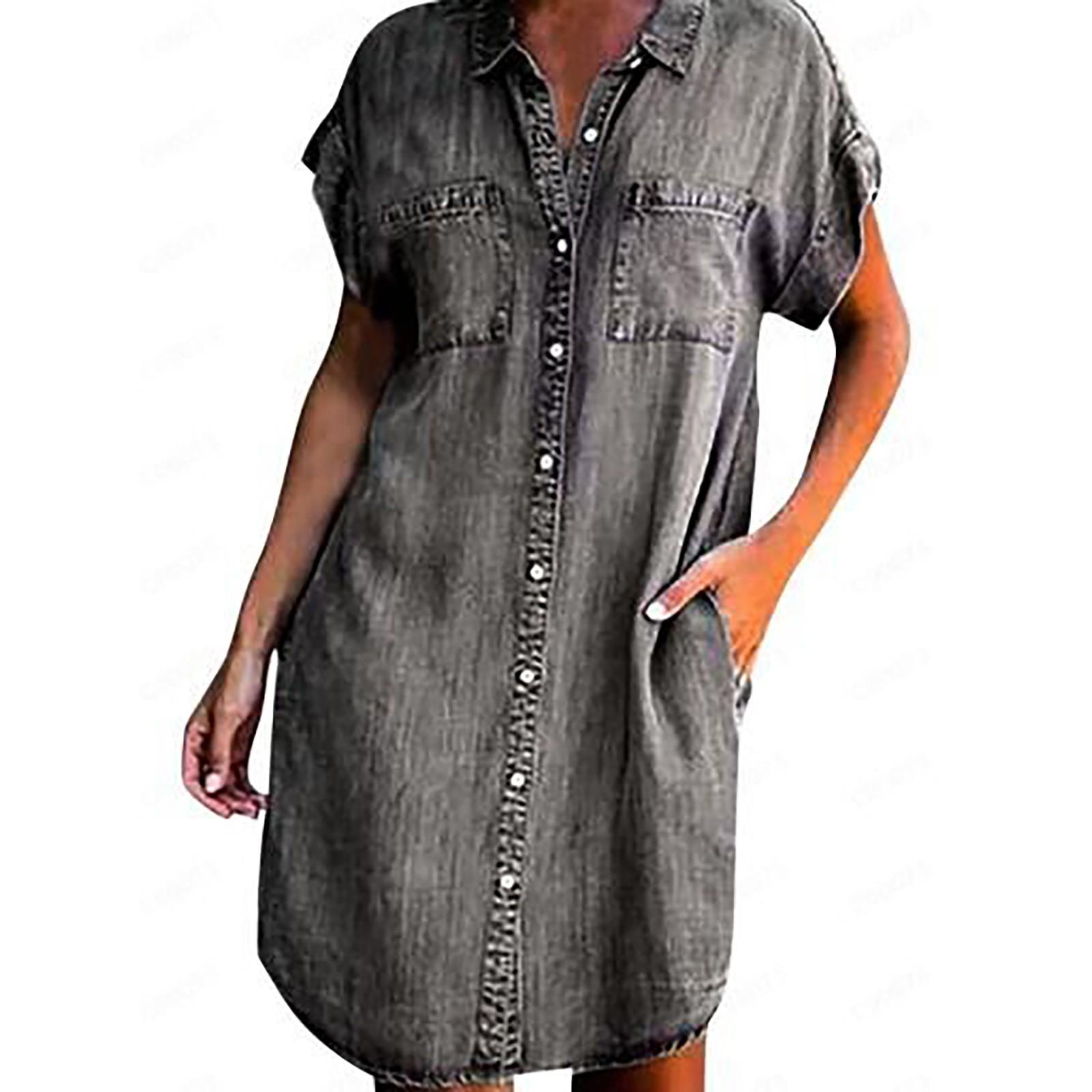Женские платья из искусственного денима больших размеров, платье длиной до колена с короткими рукавами XL чёрный