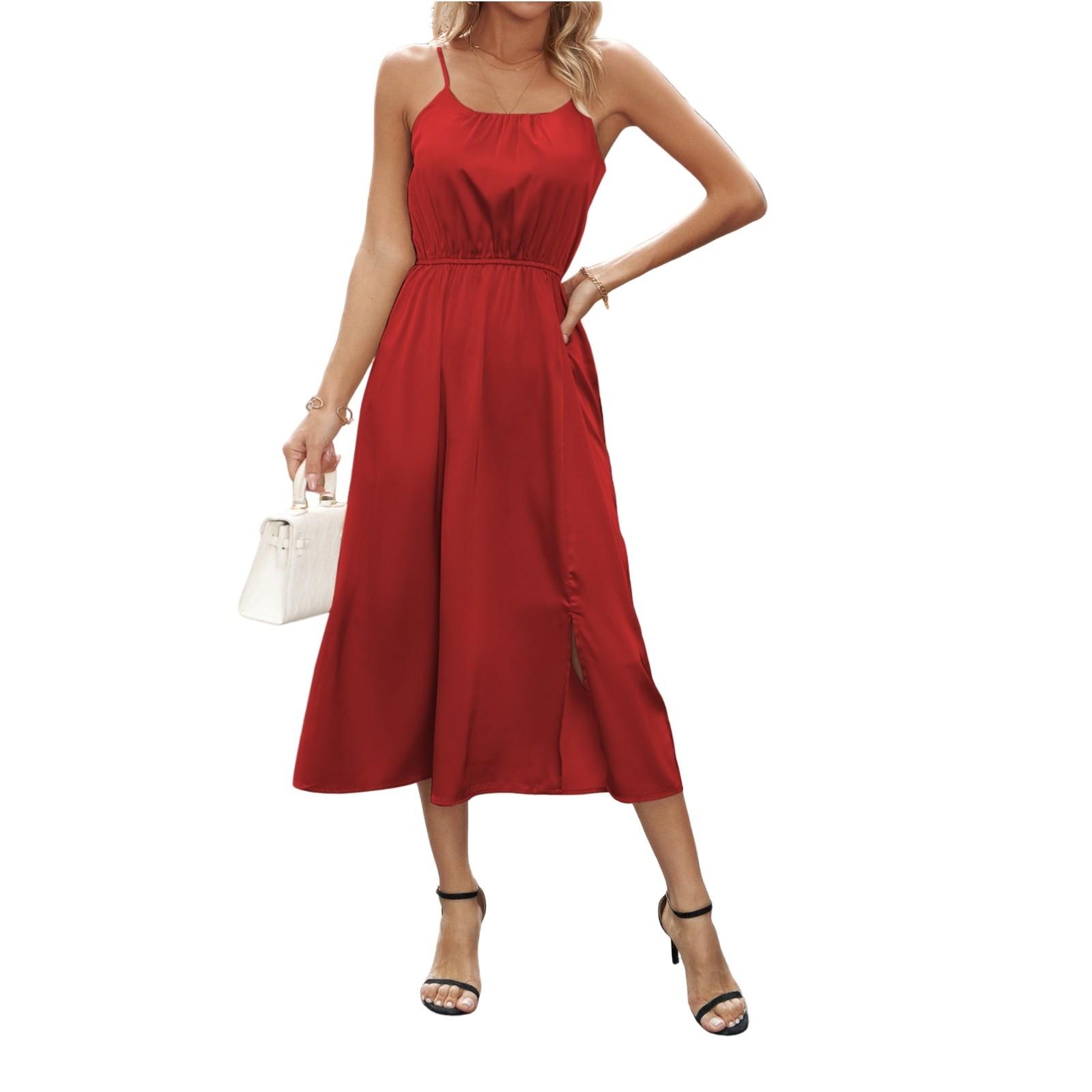 Женские платья с разрезом на одну горловину, сексуальные платья без бретелек для вечеринок S красный