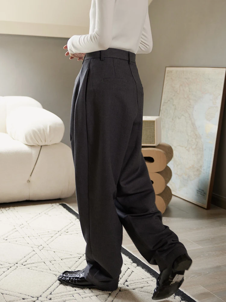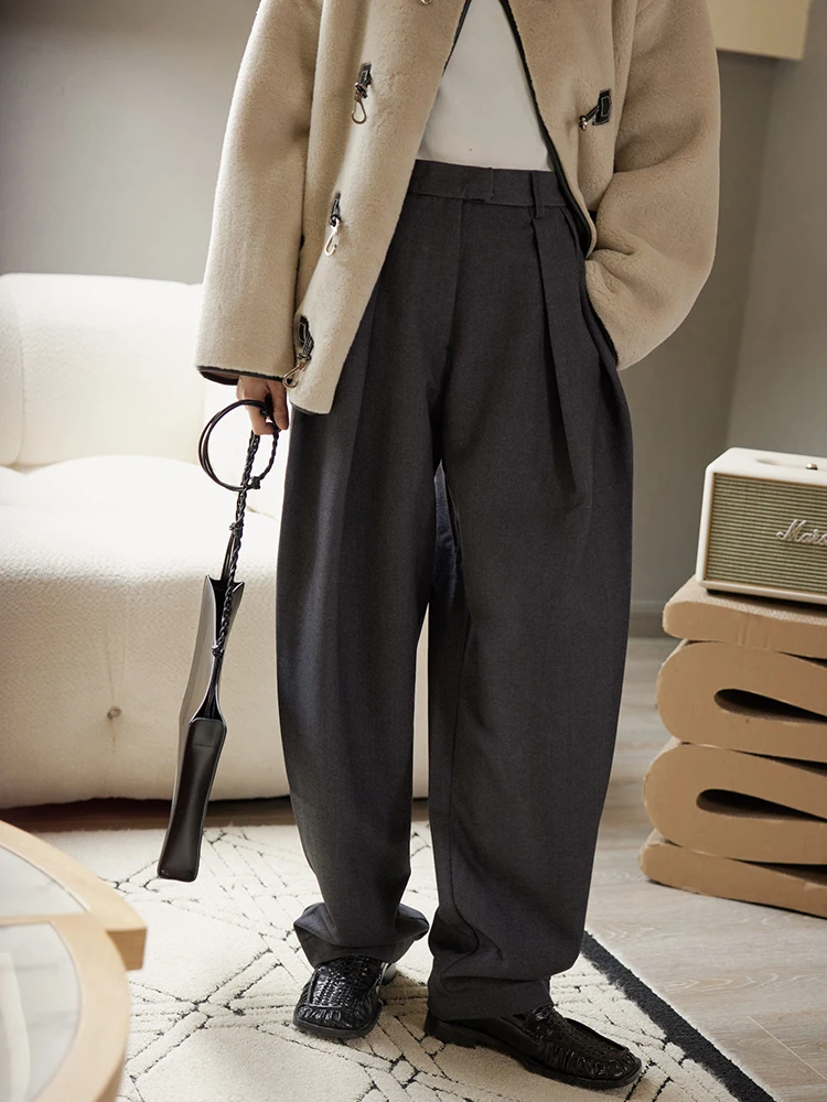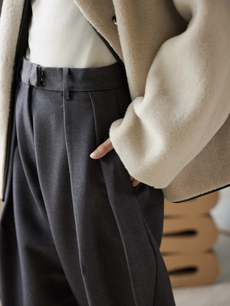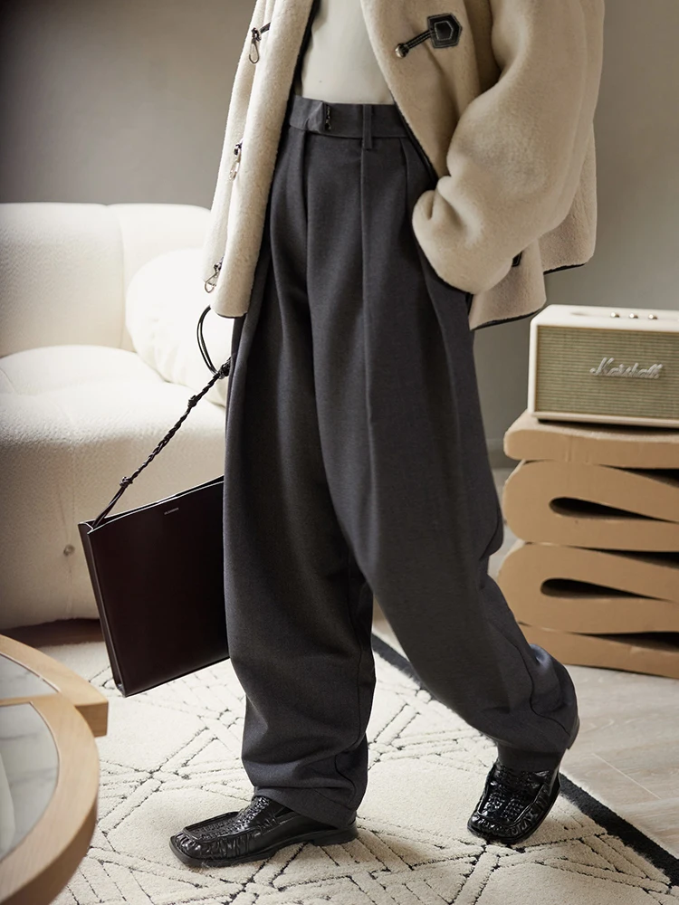 Женские плиссированные брюки LANMREM, прямые широкие теплые брюки с высокой талией, весна 2024, новинка 26D6502