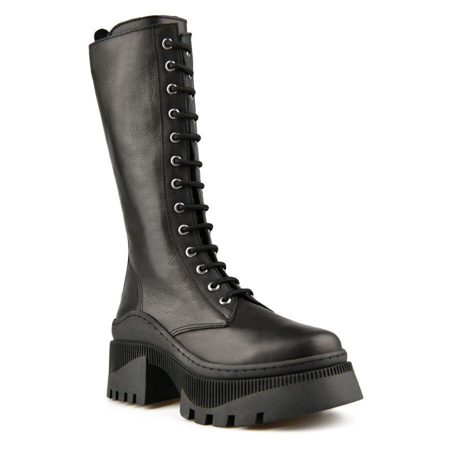 Женские повседневные ботинки черного цвета.Высота каблука 7 см.Высота подошвы 5 см.Расстояние от пятки до верха 27 см.Сделано в Болгарии