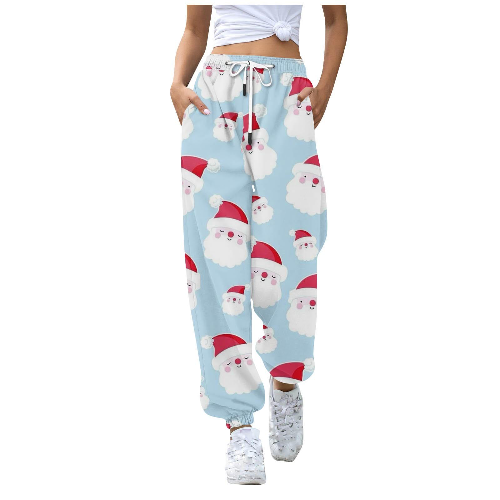 Женские повседневные брюки для отдыха с рождественским принтом, спортивные брюки, брюки с эластичной резинкой на талии, брюки с завязками на шнурке XXXL белый
