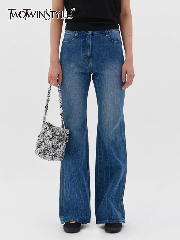 Женские повседневные джинсы TWOTWINSTYLE, однотонные винтажные минималистичные джинсы составного кроя с высокой талией и карманами на лето