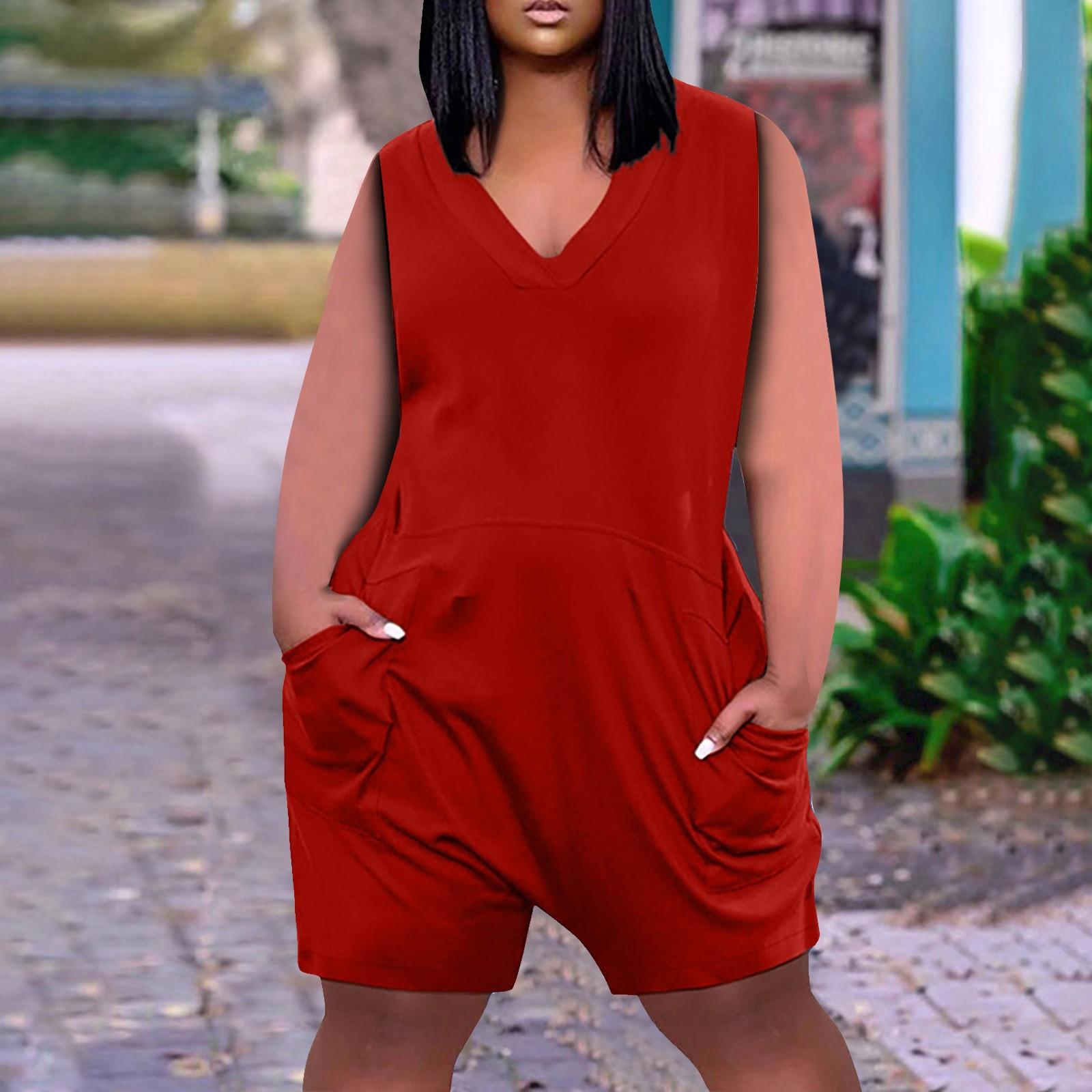 Женские повседневные комбинезоны без рукавов с V-образным вырезом и карманами больших размеров, широкие шорты, комбинезоны S красный