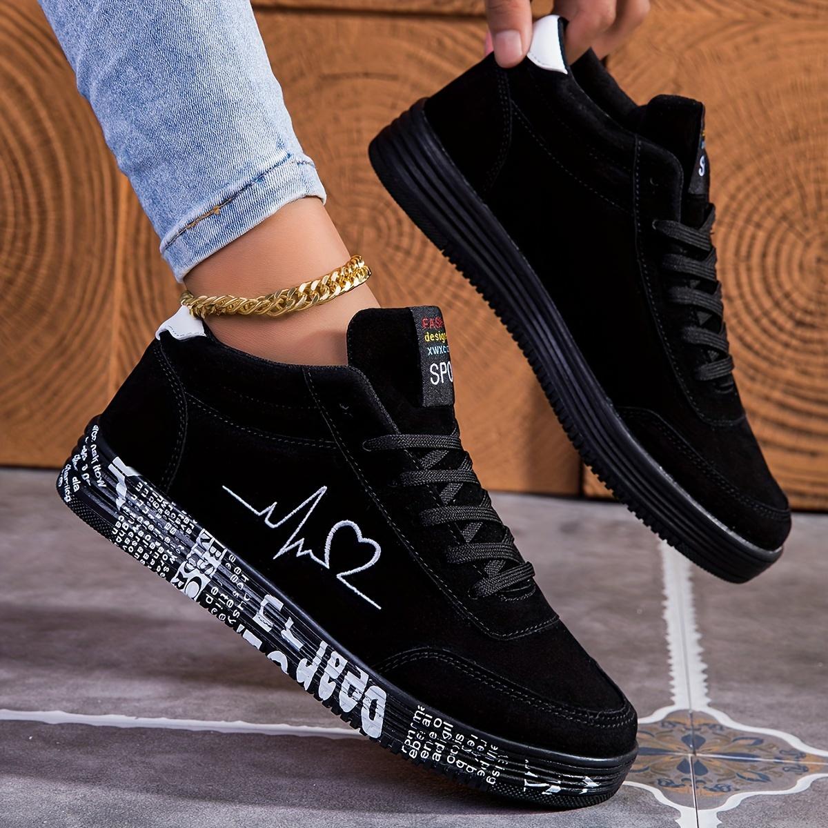 Женские повседневные кроссовки с мягкой подошвой и дизайном в виде сердца, удобные туфли для скейтбординга на шнуровке на День святого Валентина, низкие туфли средней высоты для пар 41 чёрный