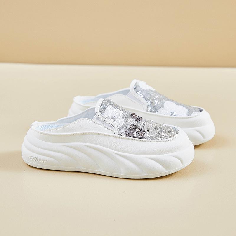 Женские повседневные кроссовки с открытой спиной, лоферы, туфли на нескользящей платформе, модельные туфли для женщин, прогулочная обувь, мюли, летние легкие пляжные шлепанцы, сандалии 38 белый