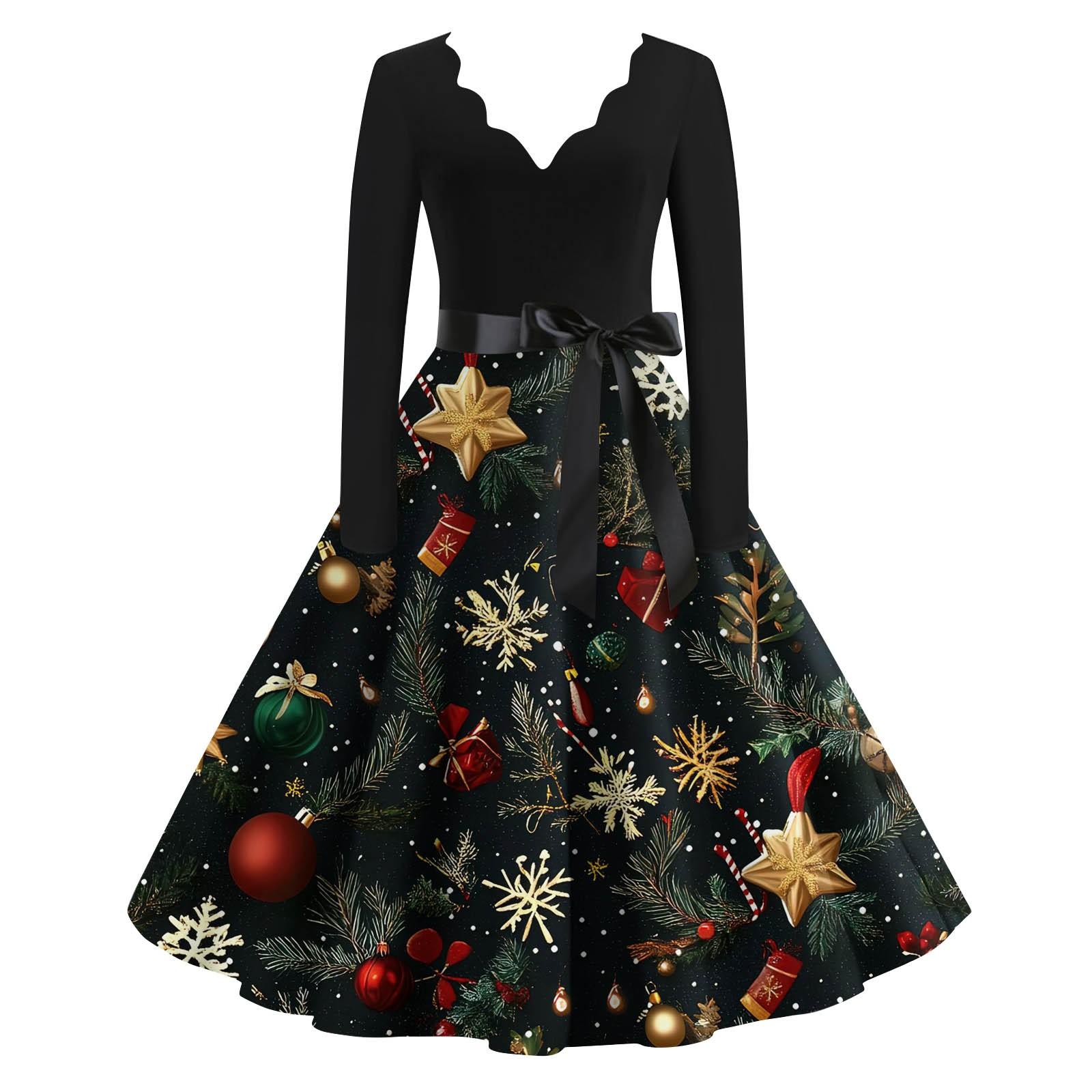 Женские повседневные модные длинные платья с рождественским графическим принтом и длинными рукавами в винтажном стиле XXXL чёрный